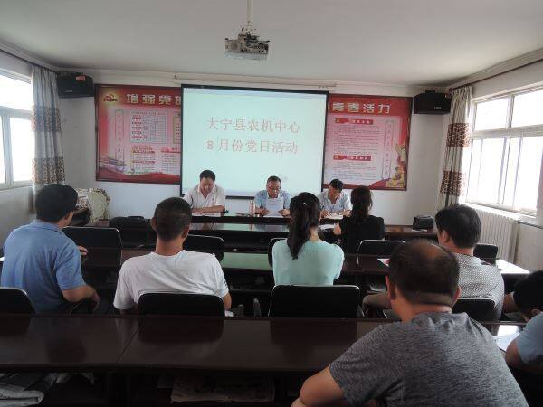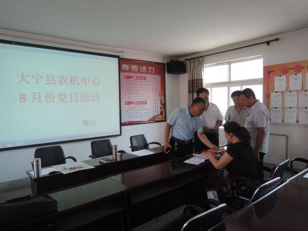按照大宁县委组织部安排8月份的党日活动主题要求,8月15日上午,大宁县农机中心召开全体党员会。会上,中心主任贺炳文带着大家学习了习近平总书记视察山西重要讲话精神,7.26在省部级干部研讨班上讲话精神,对当前和今后学习、工作任务进行安排部署。他说,习近平总书记视察山西重要讲话为山西的发展指明了方向,学习贯彻习近平总书记视察山西重要讲话精神是当前和今后一个时期的重要政治任务。他强调,这次学习要按照机关制定的学习计划、学习内容和日程认真进行,每位党员要认真做好笔记,撰写发言提纲,不断强化“四个意识”,增强“四个自信”,夯实共同基础,把认真学习贯彻习总书记讲话精神作为推进“两学一做”学习教育常态化、制度化,深入开展维护核心,见诸行动的强大动力,深度融合,努力搞好本职工作,以扎扎实实的工作成效,迎接党的十九大胜利召开。会后,党员同志们自觉缴纳八月份党费。